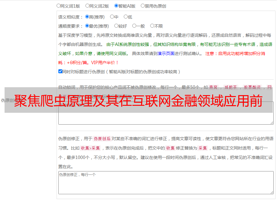 上面介绍了浅聚焦爬虫的核心是选定合适的*敏*感*词*URL,这些*敏*感*词*URL主要是主题网站的入口URL。比如北京赶集网担保贷款频道的入口URL:,这个URL透漏给我们很多信息,根据这些信息,我们可以初步预测到这个URL所链接的页面的主题就是担保保险,其地域在北京,其平台是赶集网。由此我们发现,互联网上的网站或者网站的一个模块大部分都是有固定主题的,并且同一网站中同一主题的页面URL,都有一定的规律可循。针对这种情况,通过URL预测页面主题的思路也就自然而生了。除此之外,页面中绝大部分超链接都是带有锚文本的,而锚文本基本可以看做是对目标页面的概括描述。结合对URL的分析和对锚文本的分析,对目标页面进行主题预测的正确率也就相当可观了。显而易见,针对URL的主题预测策略,可以有效的减少不必要的页面下载,节约下载资源,加快下载速度。然而,这种预测结果并不能完全保证丢弃的URL都是与主题无关的,因此会有一些遗漏。同时,这种方式也无法确保通过预测的页面都是与主题相关的,因此需要对通过的预测的URL页面进行页面内容主题提取,再对比与设定的主题做出取舍。