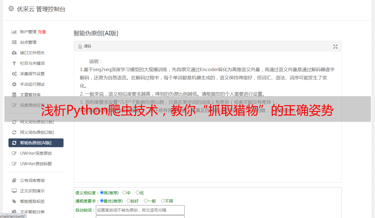 优采云 发布时间: 2022-05-07 20:02浅析Python爬虫技术,教你“抓取猎物”的正确姿势