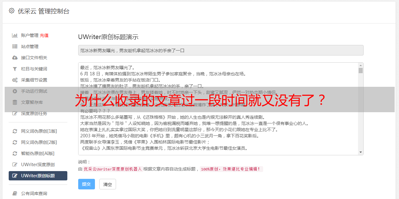 优采云 发布时间: 2022-05-08 04:19为什么收录的文章过一段时间就又没有了?
