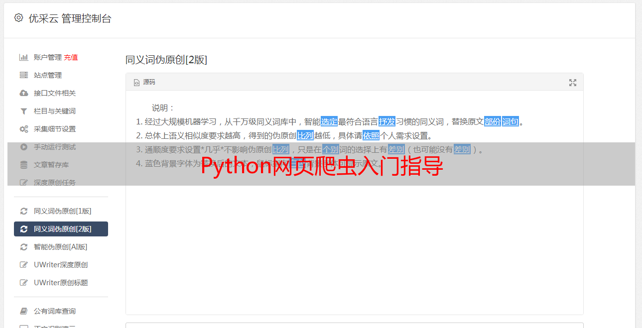 优采云 发布时间: 2022-05-08 04:22Python网页爬虫入门指导