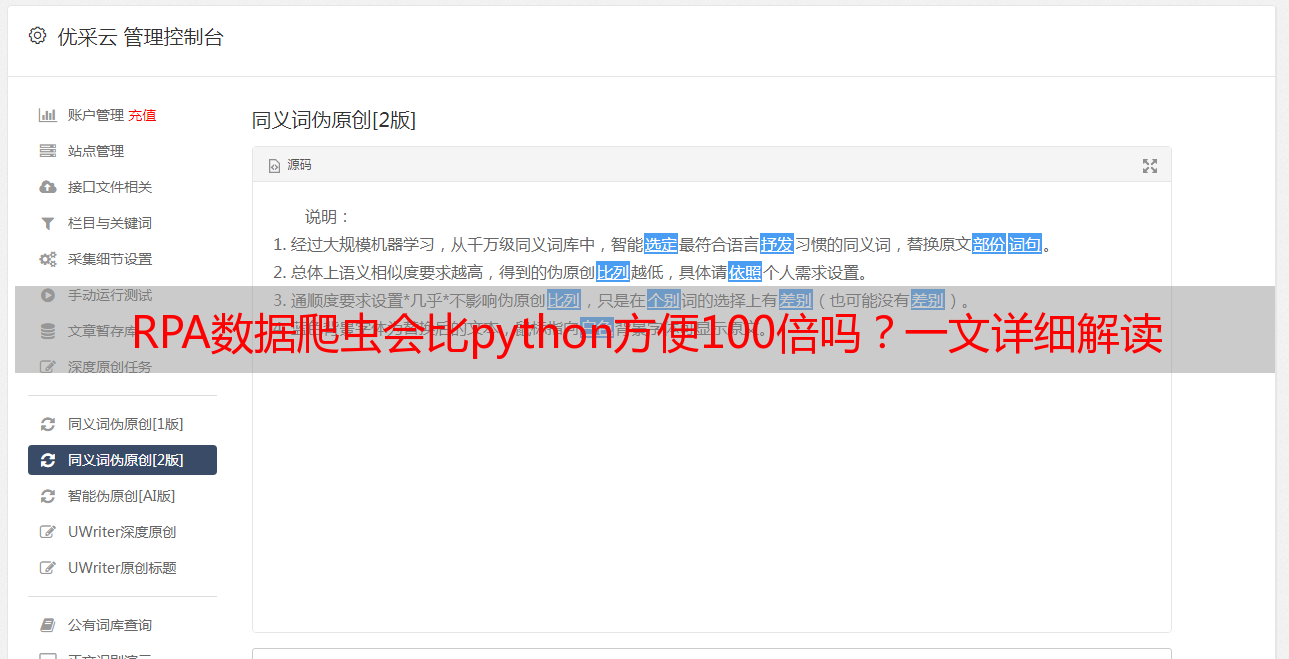 优采云 发布时间: 2022-05-08 04:22RPA数据爬虫会比python方便100倍吗?一文详细解读