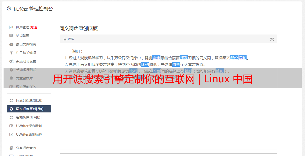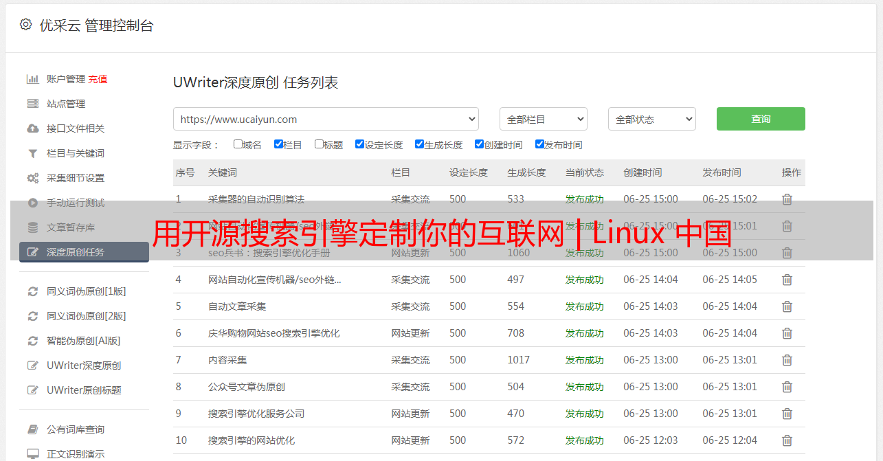 优采云 发布时间: 2022-05-08 13:49用开源搜索引擎定制你的互联网 | Linux 中国