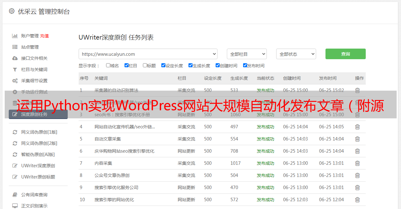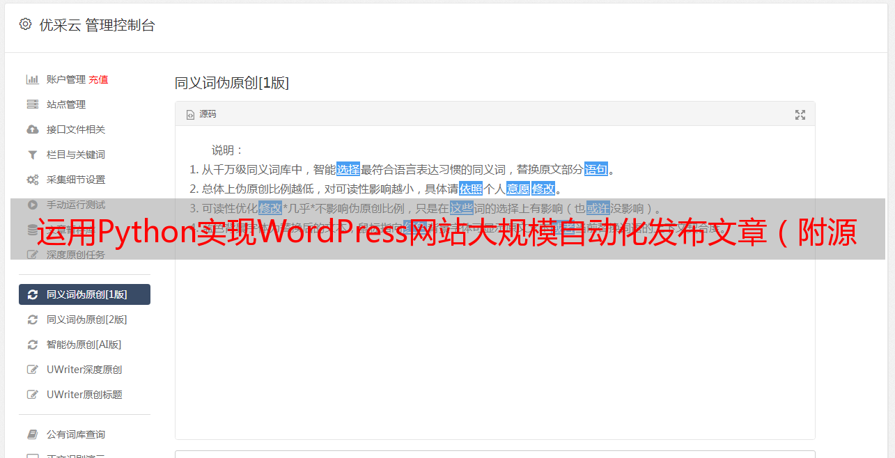 优采云 发布时间: 2022-05-08 14:43运用Python实现WordPress网站*敏*感*词*自动化发布文章(附源码版)