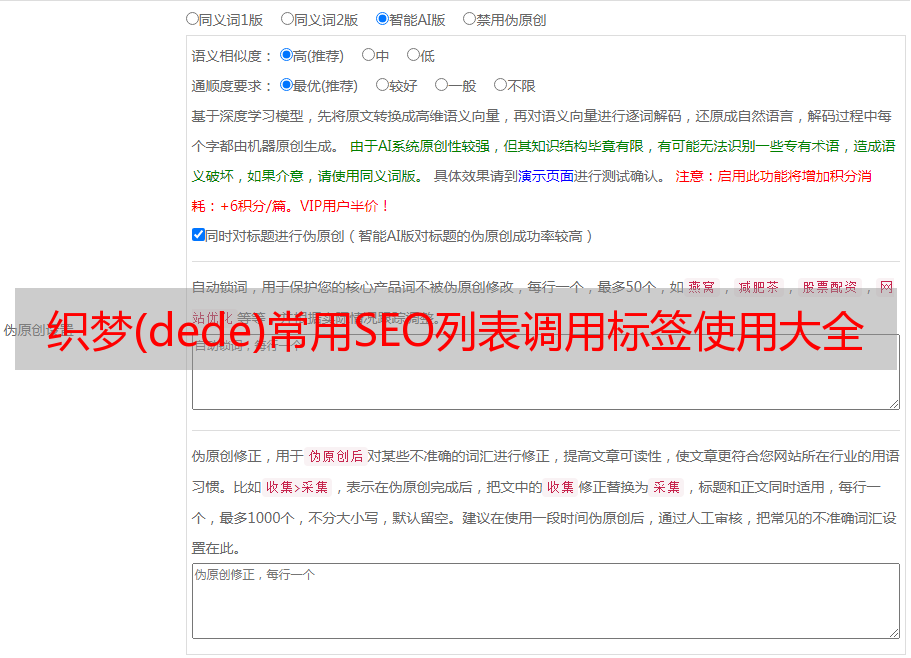 优采云 发布时间: 2022-05-08 19:10织梦(dede)常用SEO列表调用标签使用大全