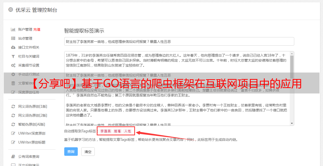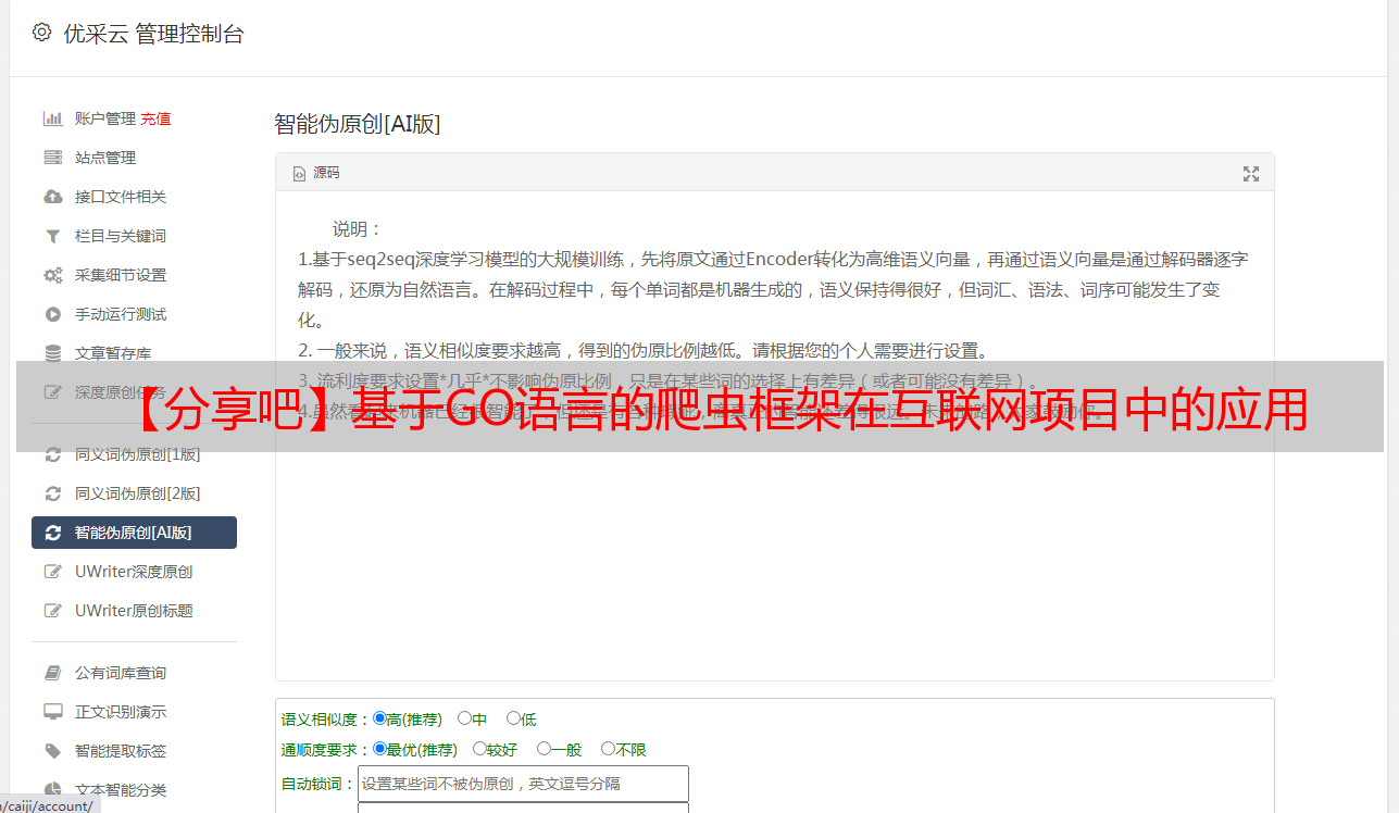优采云 发布时间: 2022-05-08 22:04【分享吧】基于GO语言的爬虫框架在互联网项目中的应用