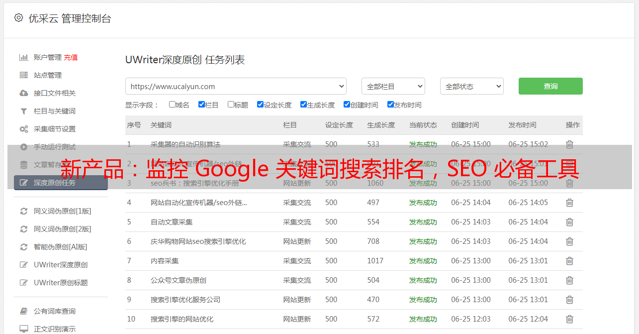 优采云 发布时间: 2022-05-09 16:30新产品:监控 Google 关键词搜索排名,SEO 必备工具