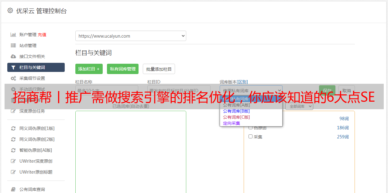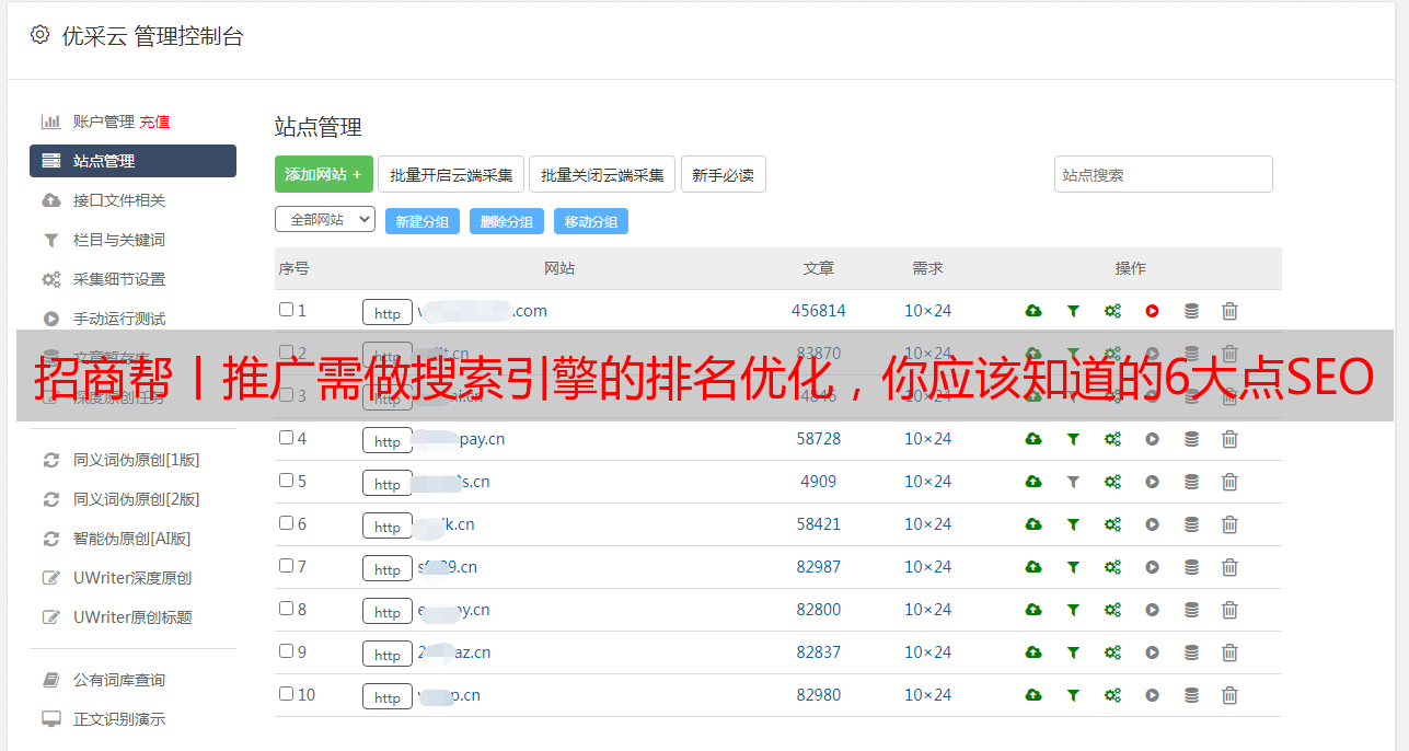 优采云 发布时间: 2022-05-09 17:03招商帮丨推广需做搜索引擎的排名优化,你应该知道的6大点SEO方法!