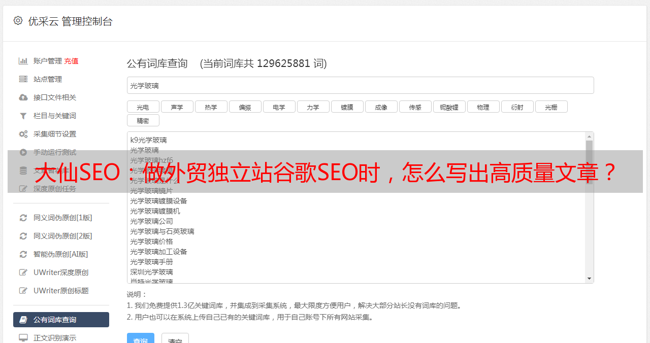 优采云 发布时间: 2022-05-10 01:36大仙SEO:做外贸独立站谷歌SEO时,怎么写出高质量文章?