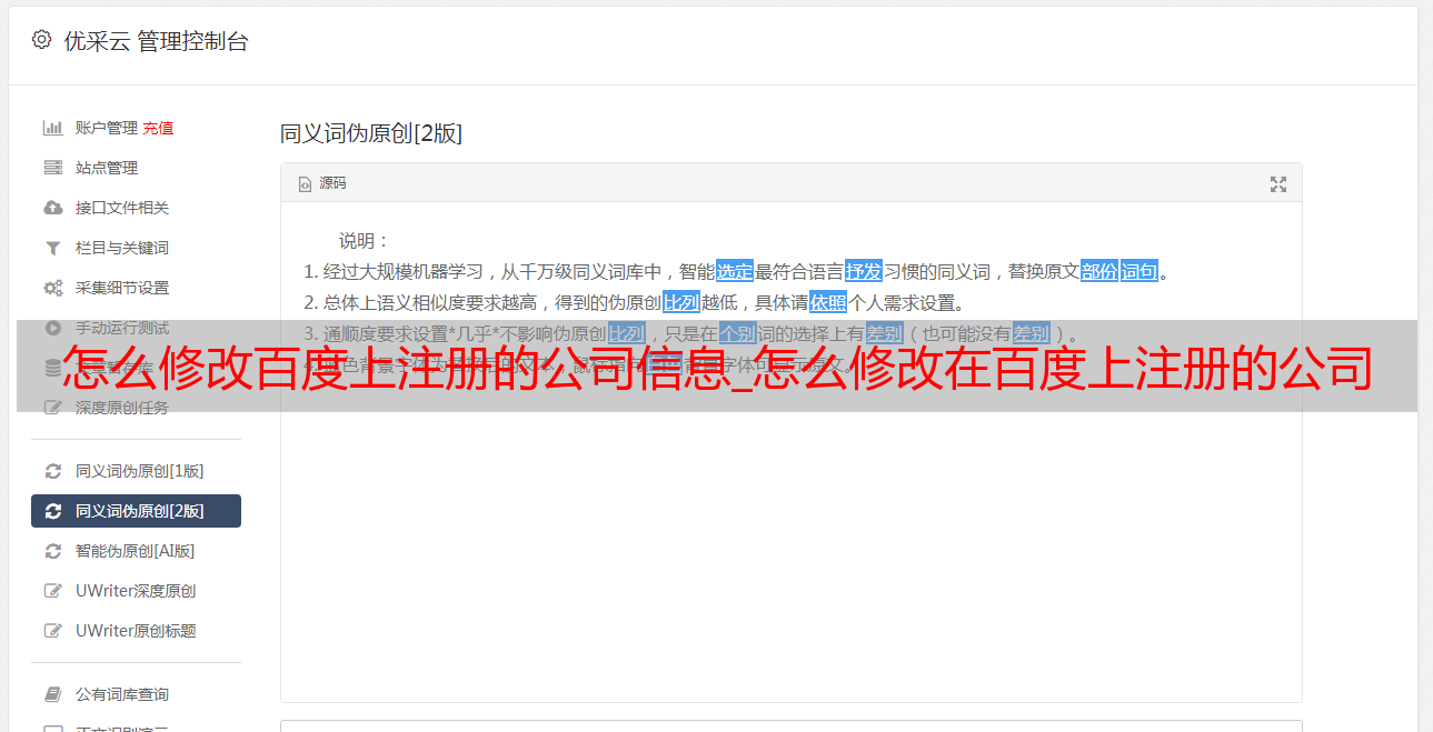 优采云 发布时间: 2022-05-10 09:59怎么修改百度上注册的公司信息_怎么修改在百度上注册的公司信息