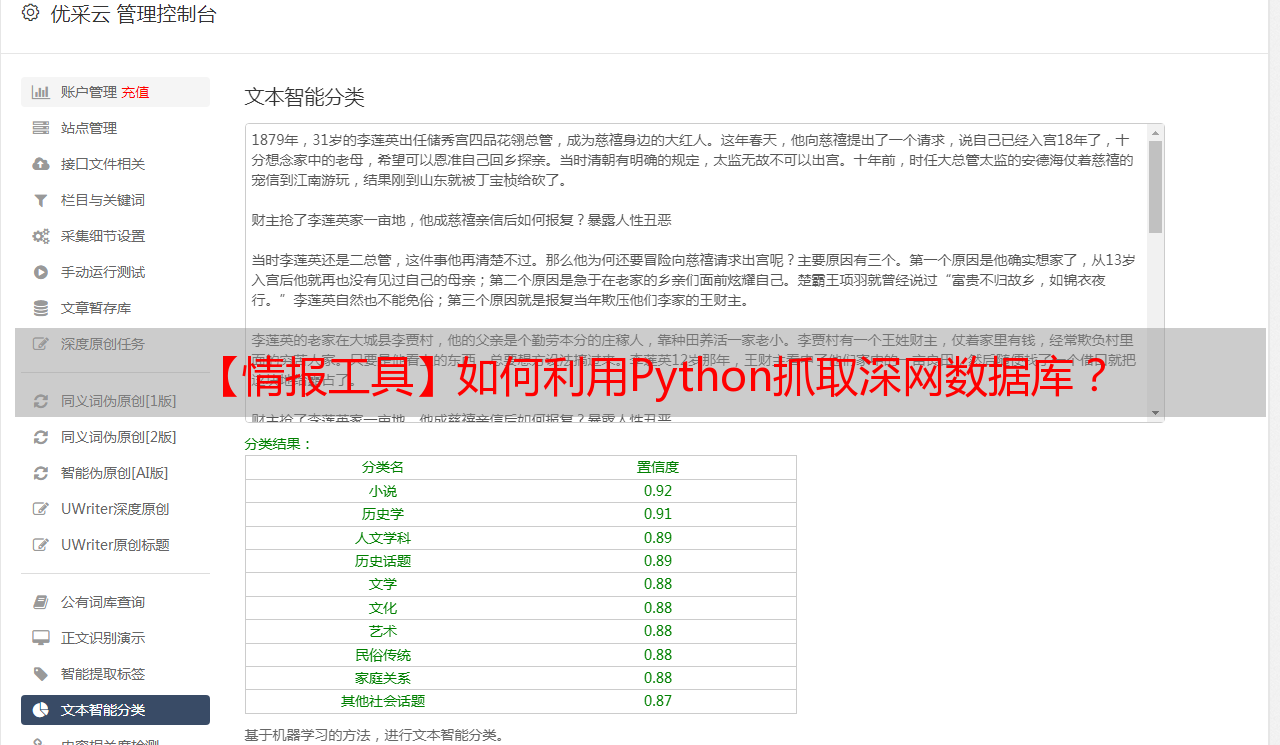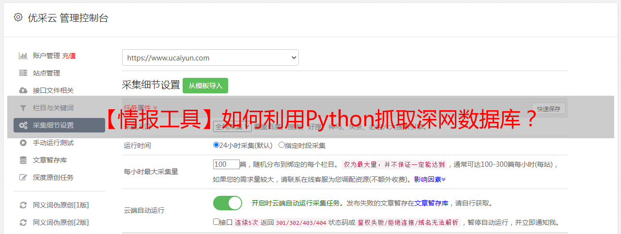 优采云 发布时间: 2022-05-11 14:36【情报工具】如何利用Python抓取深网数据库?