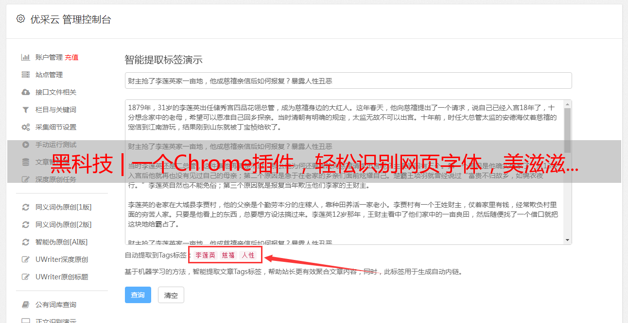 优采云 发布时间: 2022-05-12 18:44黑科技 | 一个Chrome插件,轻松识别网页字体,美滋滋...