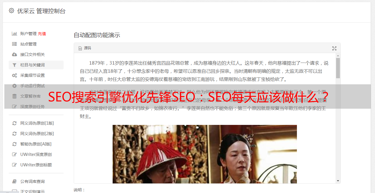优采云 发布时间: 2022-05-13 21:47SEO搜索引擎优化先锋SEO:SEO每天应该做什么?