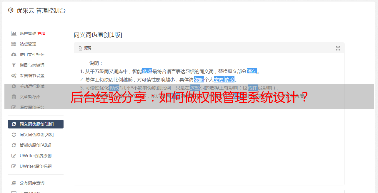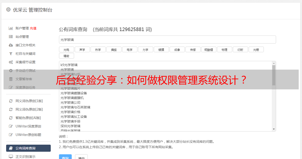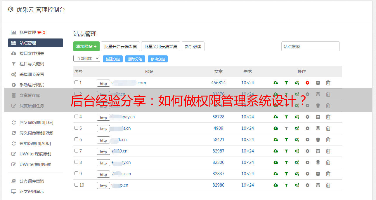 优采云 发布时间: 2022-05-14 02:44后台经验分享:如何做权限管理系统设计?