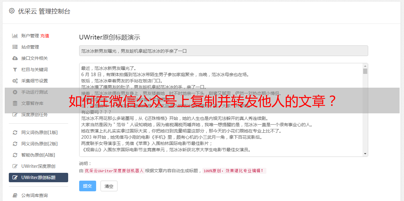 优采云 发布时间: 2020-08-06 23:08如何在微信公众号上复制并转发他人的文章?