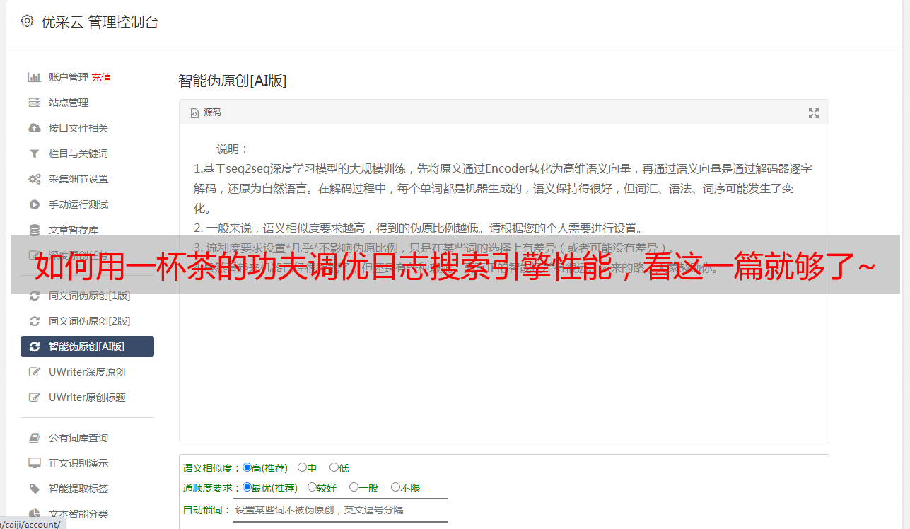 优采云 发布时间: 2022-05-14 19:02如何用一杯茶的功夫调优日志搜索引擎性能,看这一篇就够了~