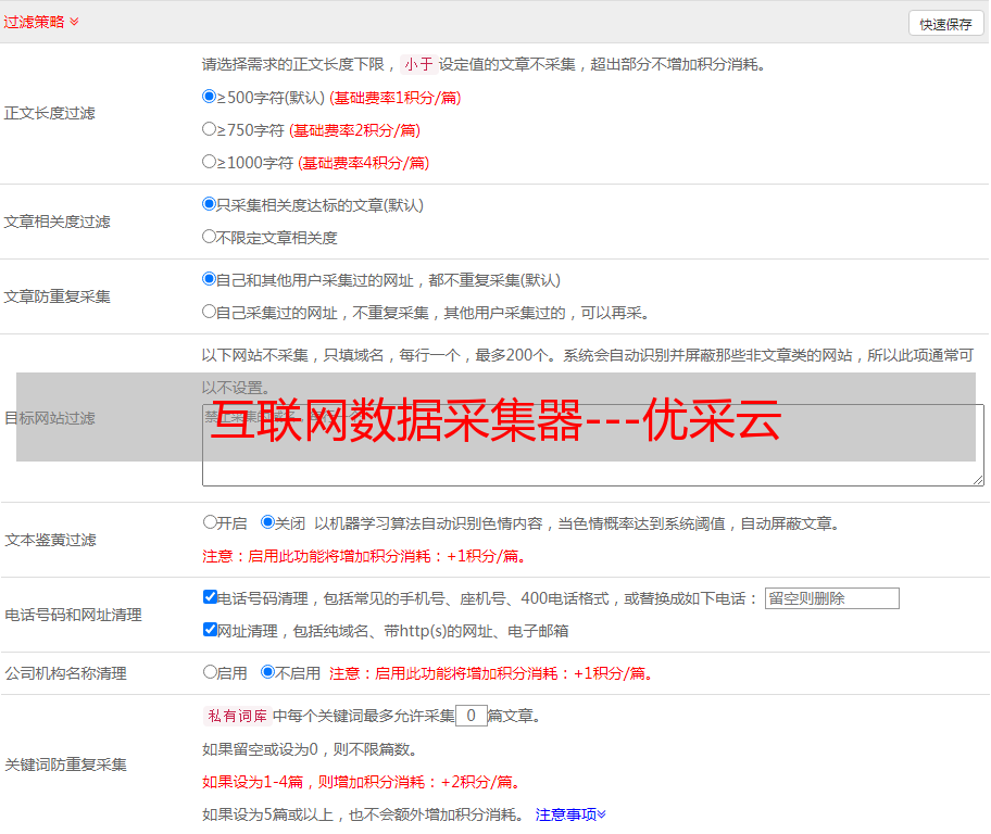 简单来讲,使用优采云可以非常容易的从任何网页精确采集你需要的数据,生成自定义的、规整的数据格式。优采云数据采集系统能做的包括但并不局限于以下内容: