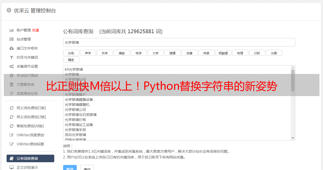 优采云 发布时间: 2022-05-16 01:11比正则快M倍以上!Python替换字符串的新姿势