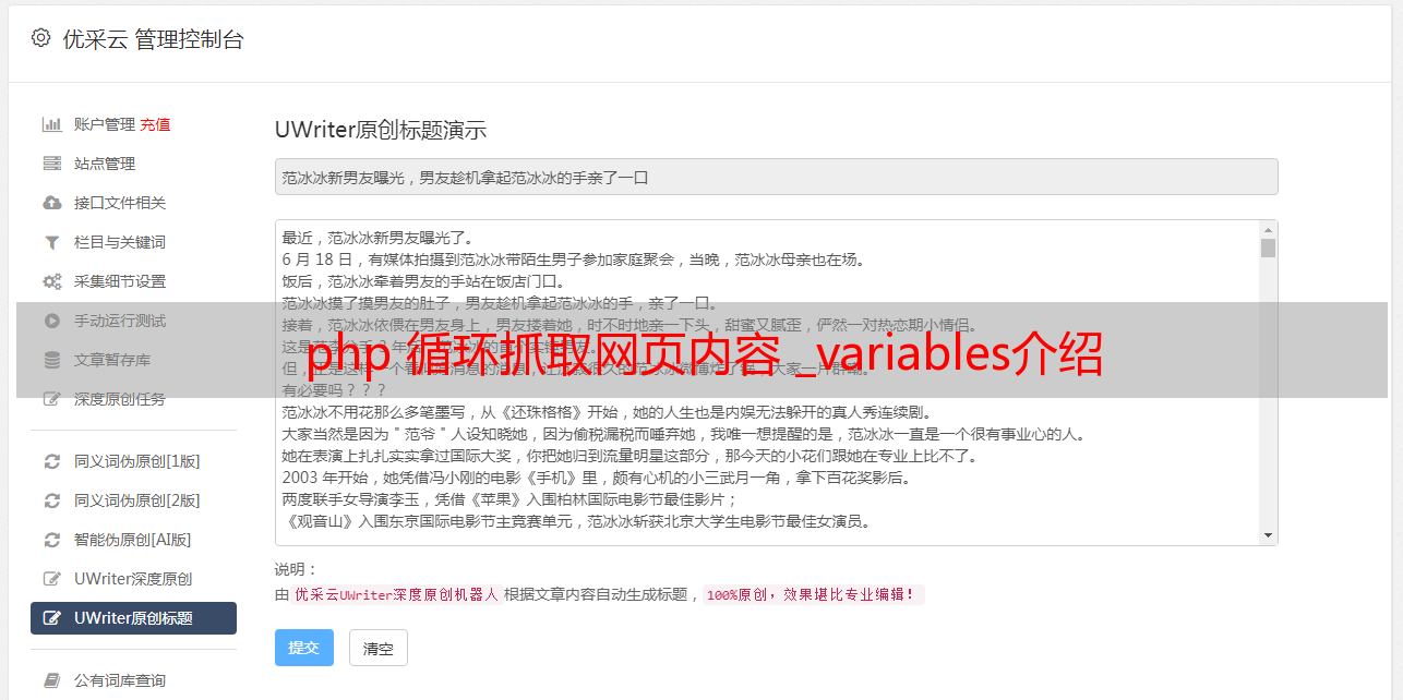 优采云 发布时间: 2022-05-25 01:13php 循环抓取网页内容 _variables介绍