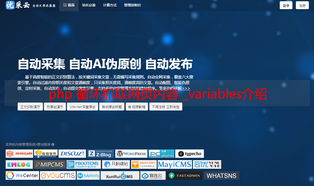 优采云 发布时间: 2022-05-26 02:09php 循环抓取网页内容 _variables介绍