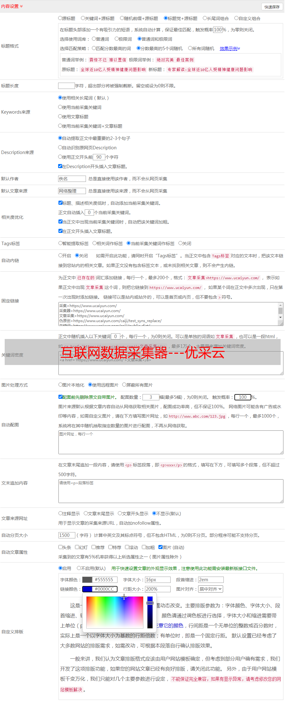 简单来讲,使用优采云可以非常容易的从任何网页精确采集你需要的数据,生成自定义的、规整的数据格式。优采云数据采集系统能做的包括但并不局限于以下内容: