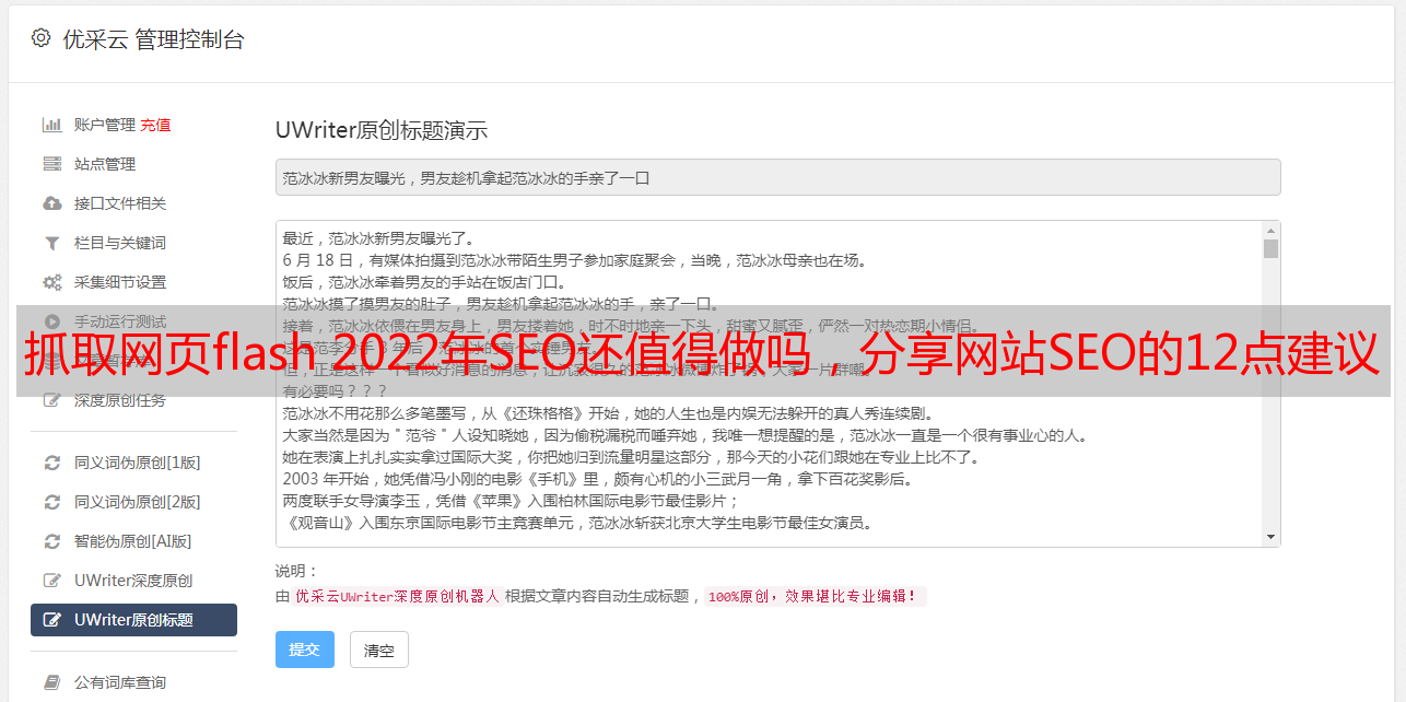 优采云 发布时间: 2022-05-29 23:52抓取网页flash 2022年SEO还值得做吗,分享网站SEO的12点建议