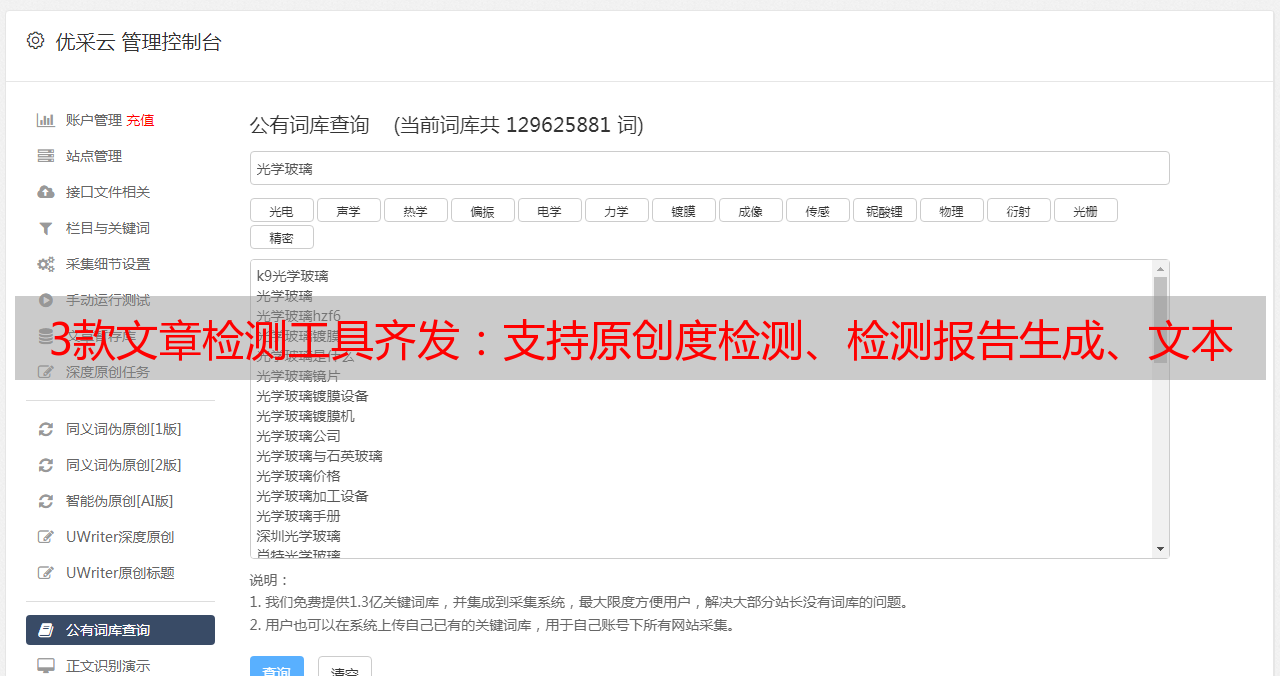 优采云 发布时间: 2022-06-01 12:173款文章检测工具齐发:支持原创度检测、检测报告生成、文本内容比对