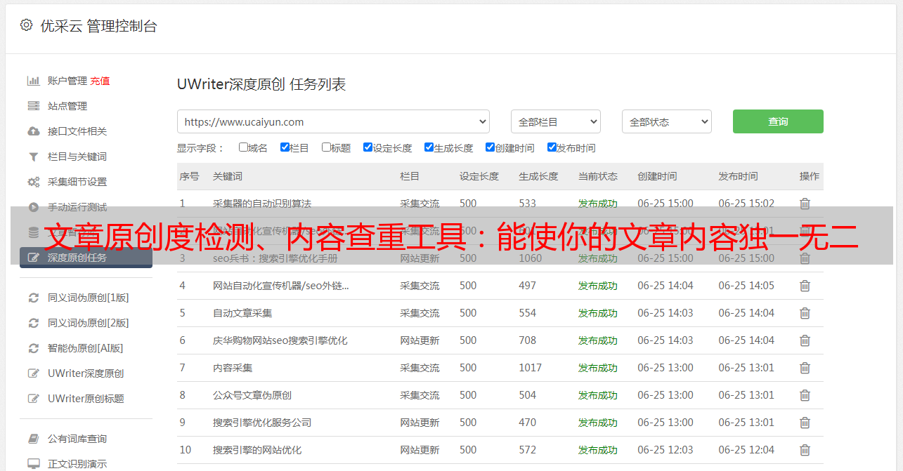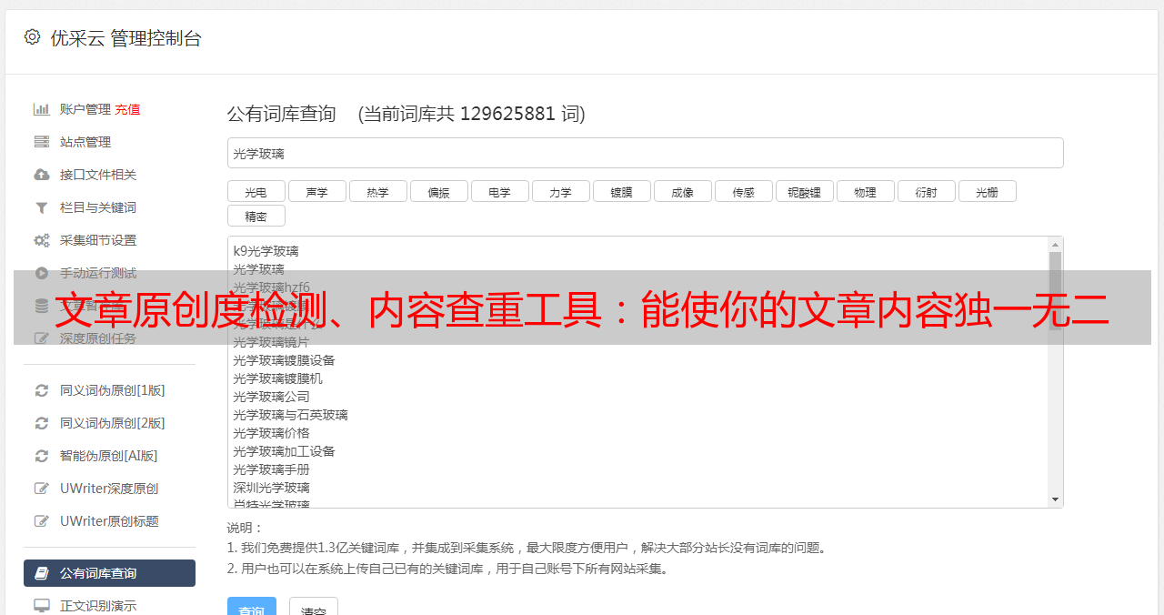 文章原创度检测、内容查重工具:能使你的文章内容独一无二
