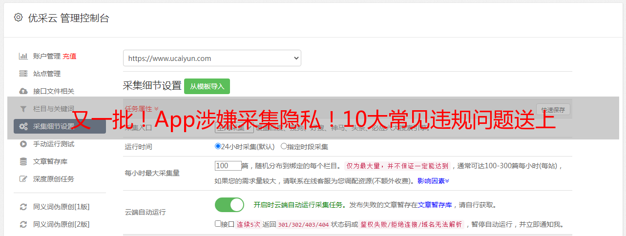 优采云 发布时间: 2022-06-01 16:00又一批!App涉嫌采集隐私!10大常见违规问题送上