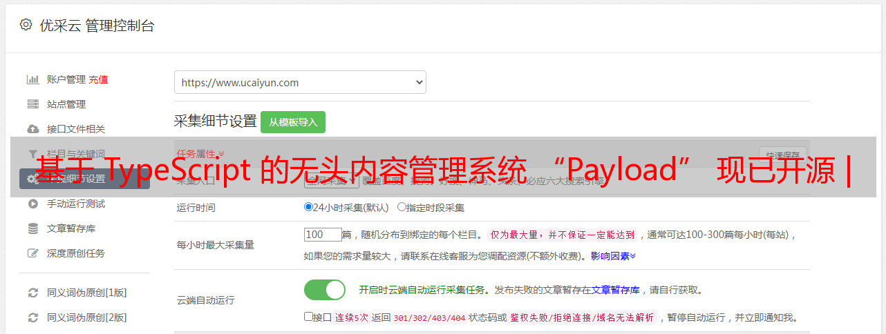 优采云 发布时间: 2022-06-02 13:46基于 TypeScript 的无头内容管理系统 “Payload” 现已开源 |