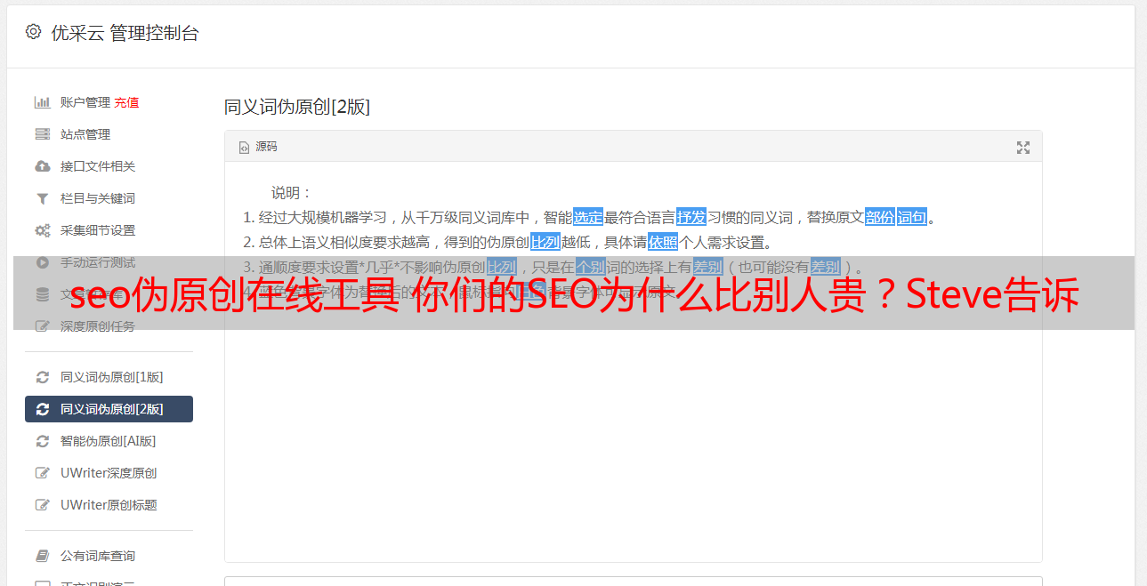 优采云 发布时间: 2022-06-05 00:10seo伪原创在线工具 你们的SEO为什么比别人贵?Steve告诉你,钱都花到哪儿去了?