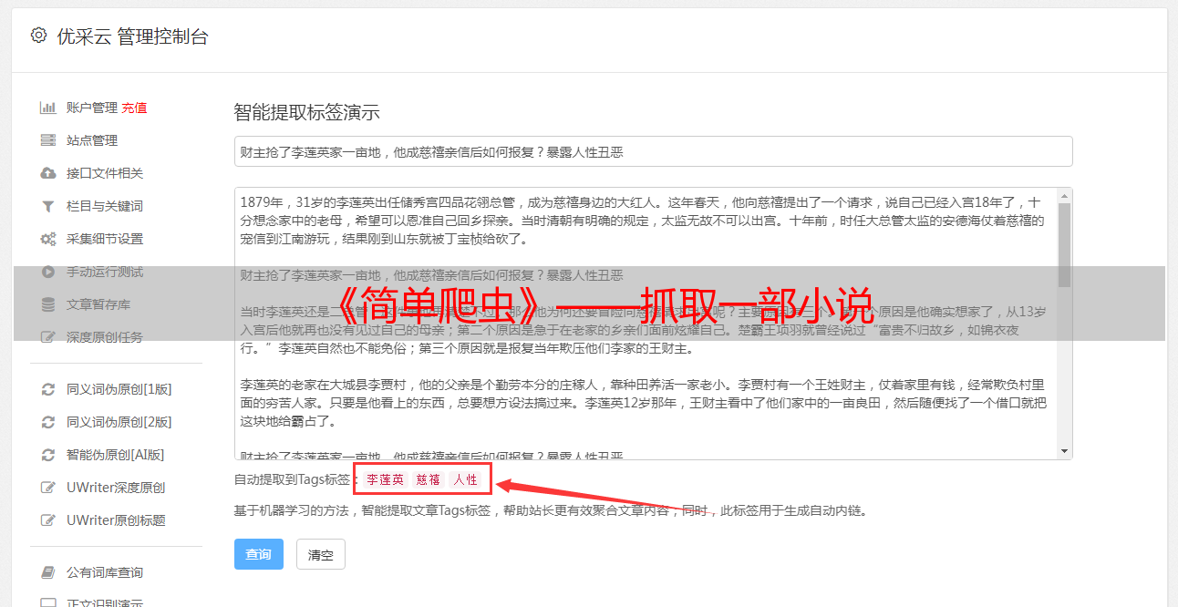 优采云 发布时间: 2022-06-05 02:52《简单爬虫》——抓取一部小说