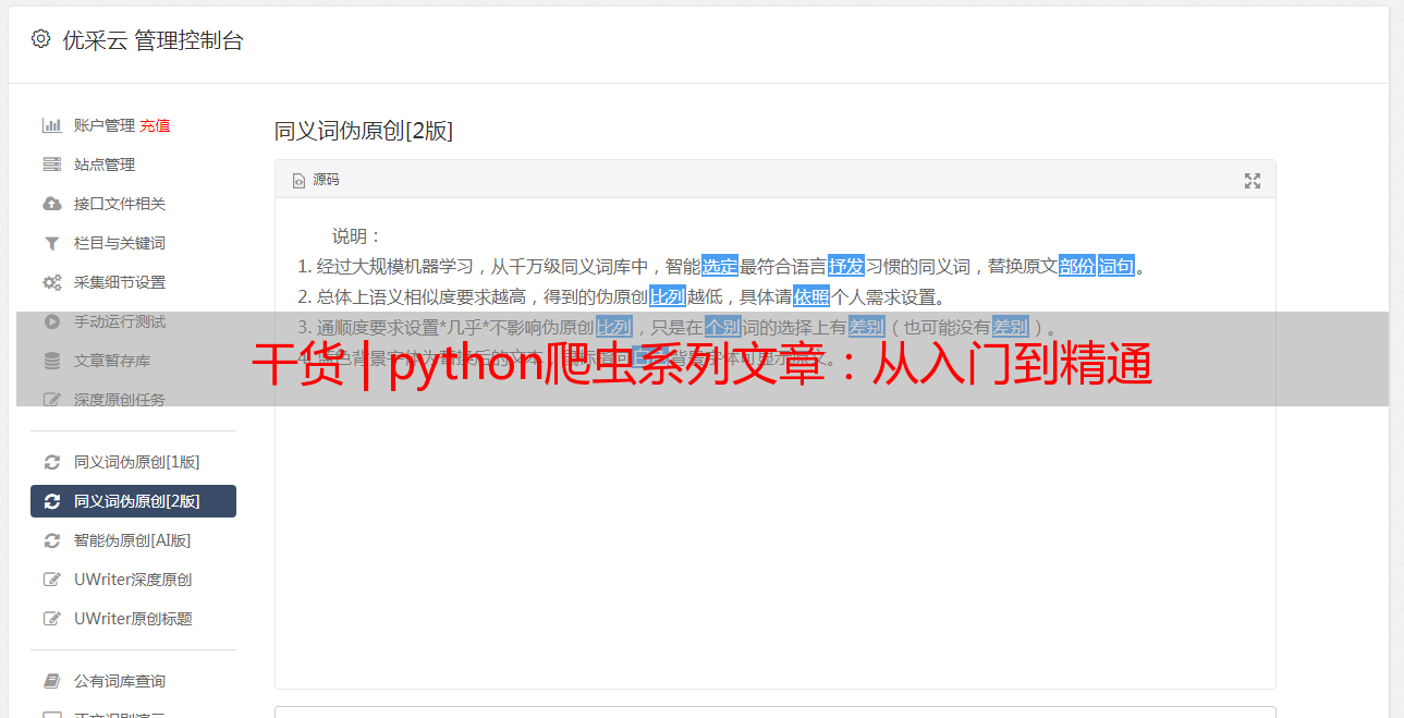 优采云 发布时间: 2022-06-06 04:11干货 | python爬虫系列文章:从入门到精通