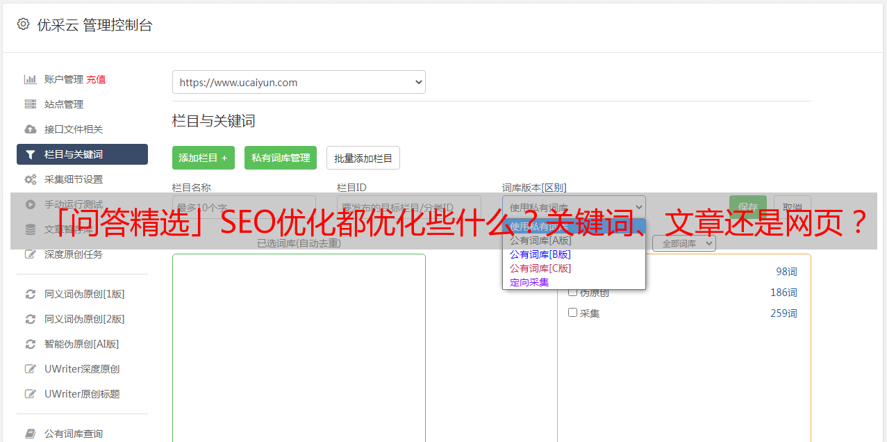 优采云 发布时间: 2022-06-07 07:08「问答精选」SEO优化都优化些什么?关键词、文章还是网页?