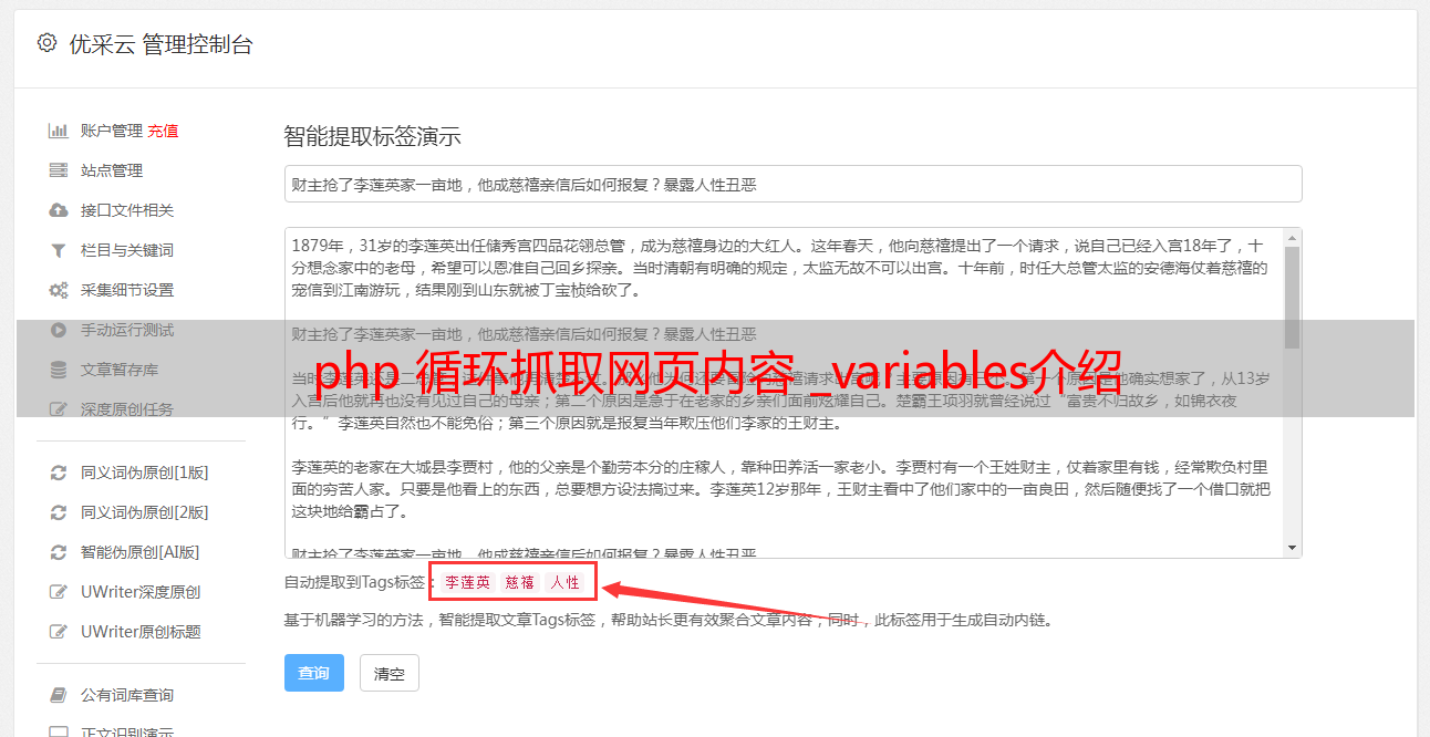 优采云 发布时间: 2022-06-07 20:21php 循环抓取网页内容 _variables介绍