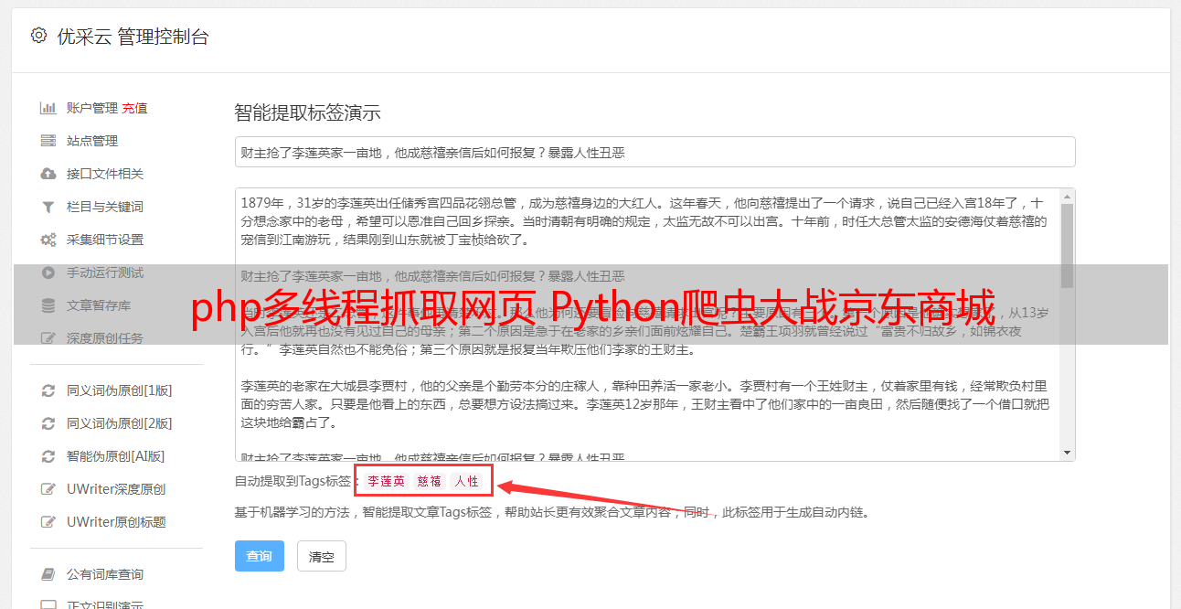 优采云 发布时间: 2022-06-09 04:33php多线程抓取网页 Python爬虫大战京东商城