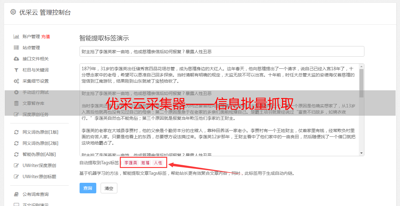 优采云采集器提供丰富的采集功能,无论是采集稳定性或是采集效率,都能够满足个人、团队和企业级采集需求。