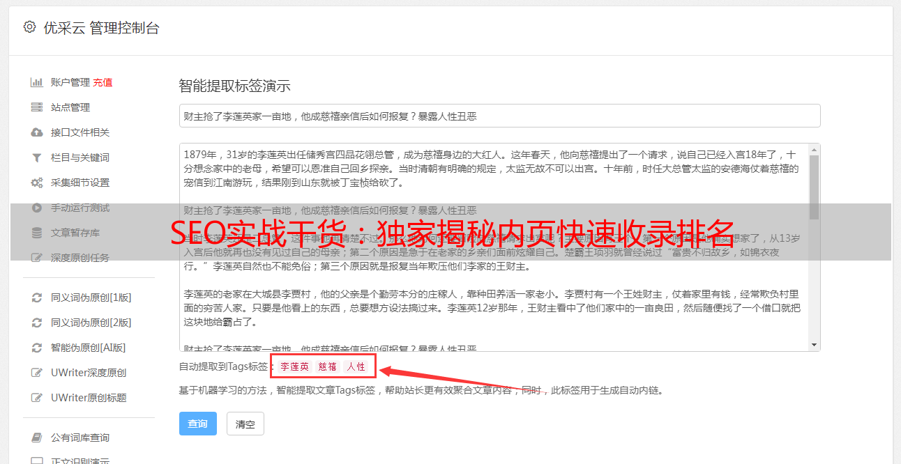 优采云 发布时间: 2022-06-17 15:24SEO实战干货:独家揭秘内页快速收录排名