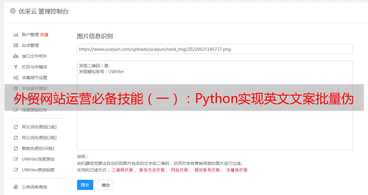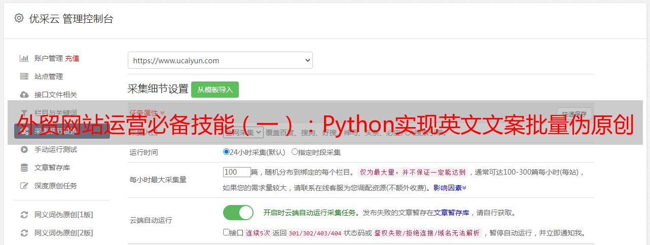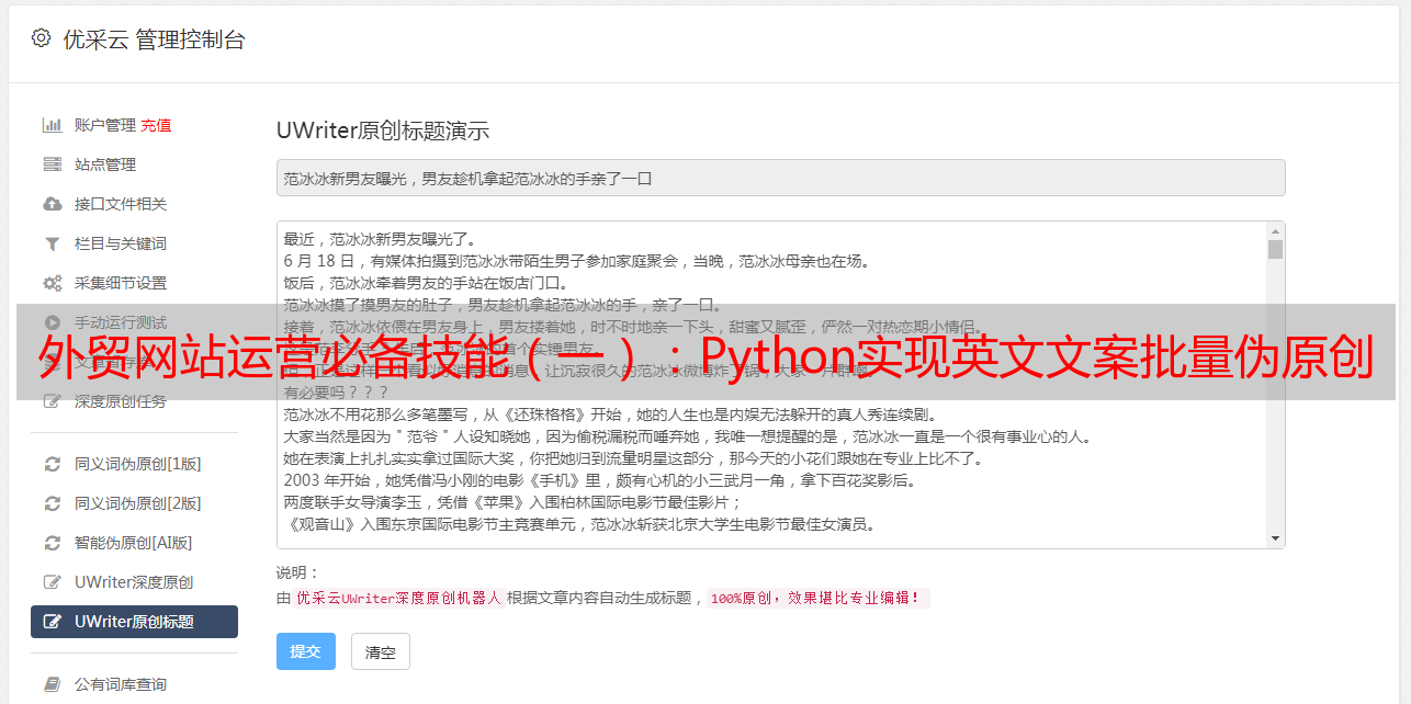 优采云 发布时间: 2022-06-17 17:37外贸网站运营必备技能(一):Python实现英文文案批量伪原创