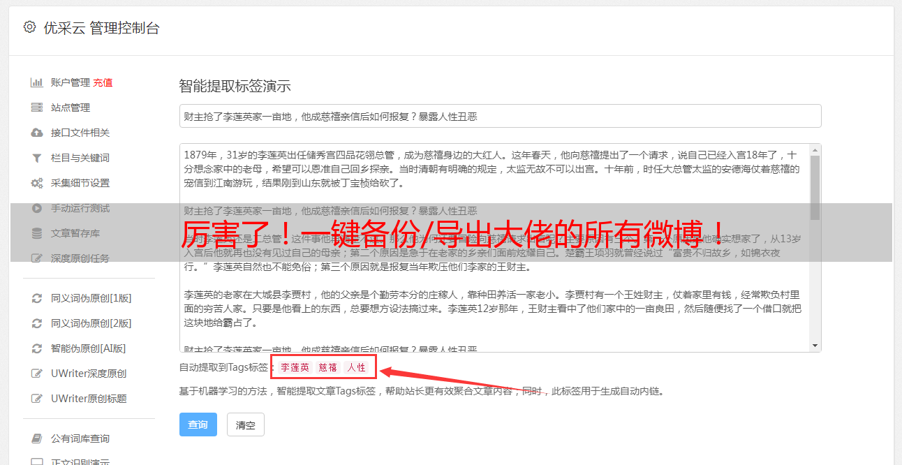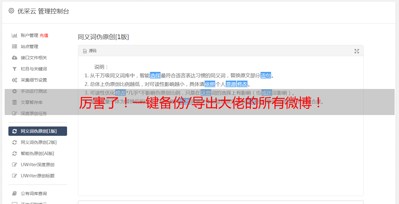 优采云 发布时间: 2022-06-17 21:09厉害了!一键备份/导出大佬的所有微博!