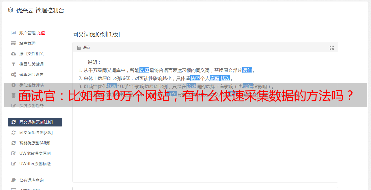 优采云 发布时间: 2022-06-18 02:35面试官:比如有10万个网站,有什么快速采集数据的方法吗?