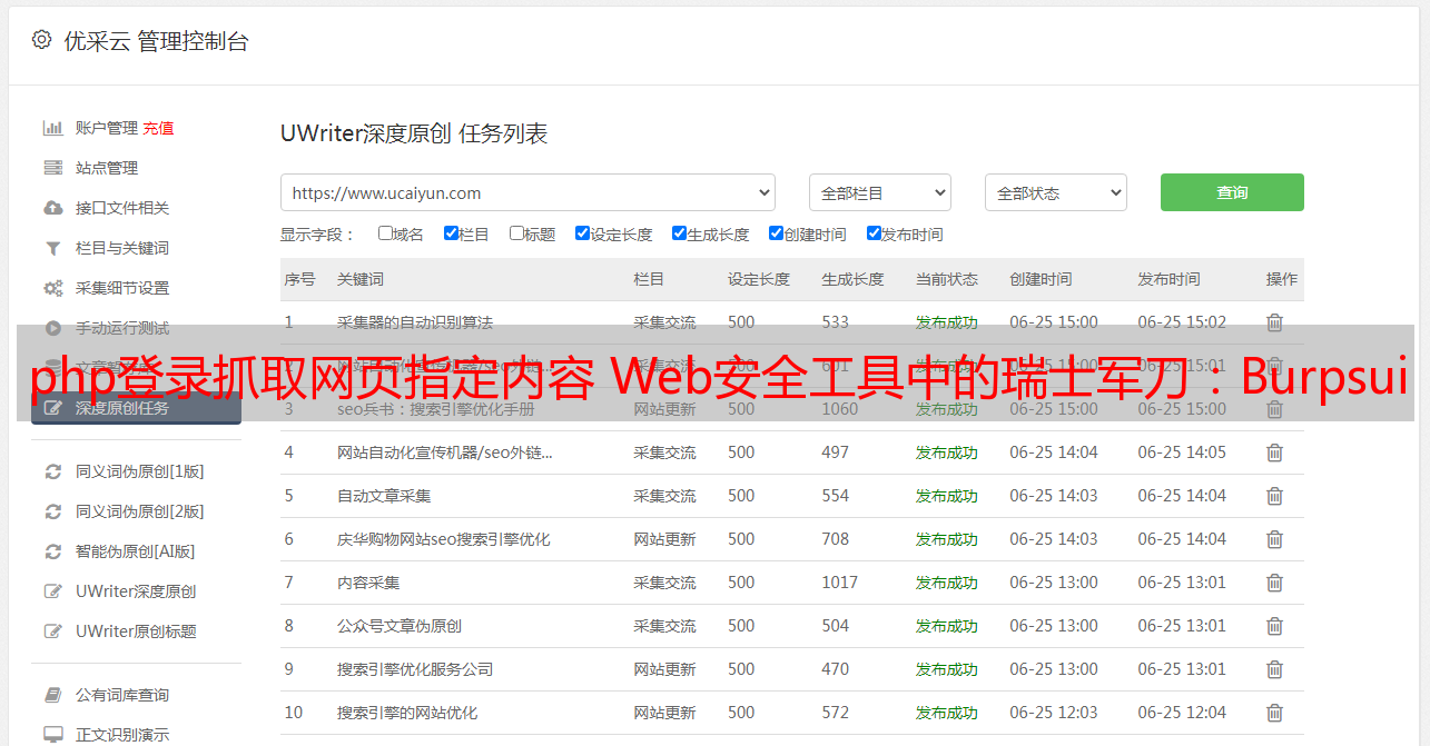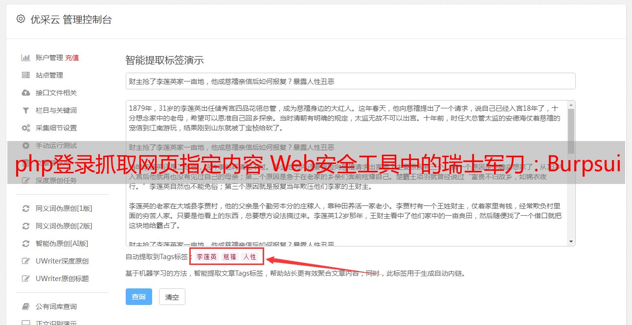 优采云 发布时间: 2022-06-18 11:57php登录抓取网页指定内容 Web安全工具中的瑞士*敏*感*词*:Burpsuite