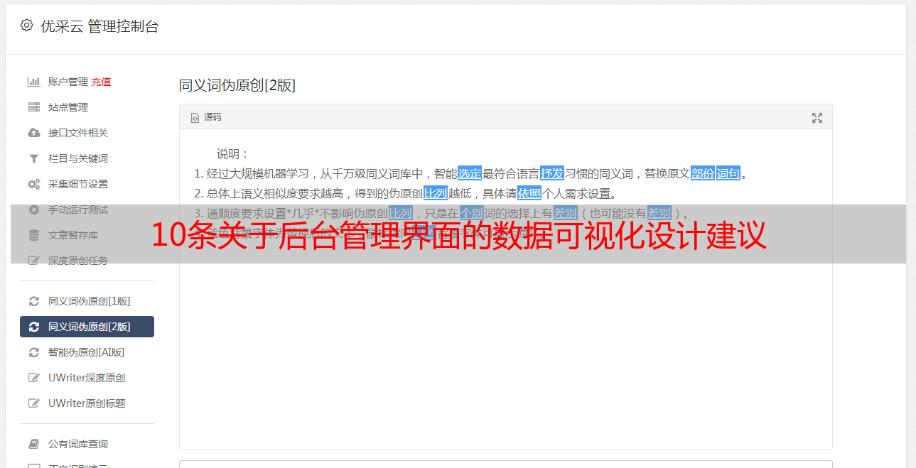 优采云 发布时间: 2022-06-18 12:0210条关于后台管理界面的数据可视化设计建议