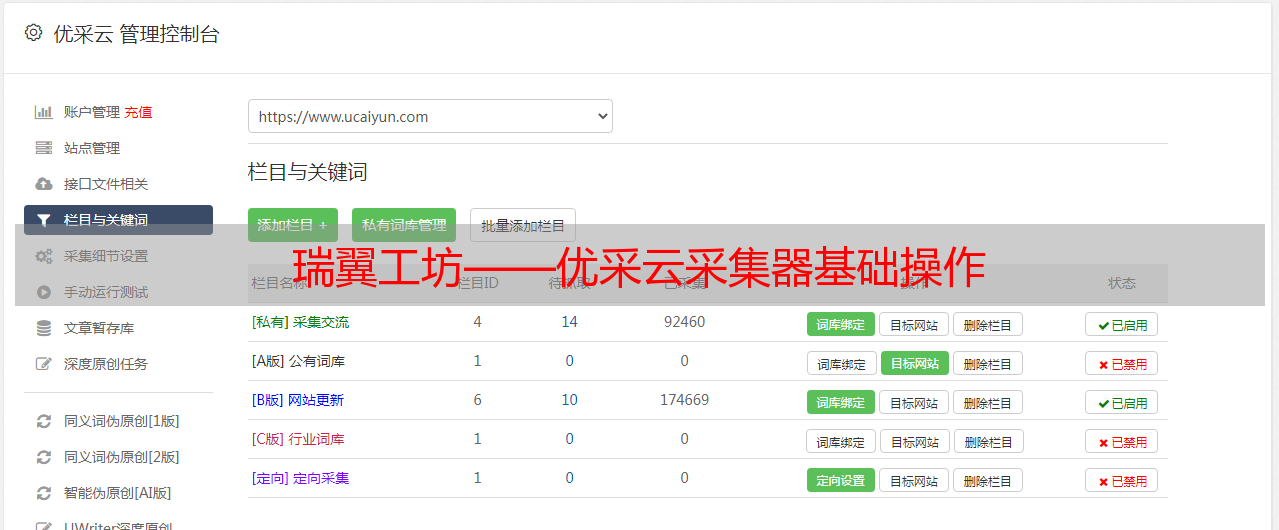 优采云数据采集系统以完全自主研发的分布式云计算平台为核心,可以在很短的时间内,轻松从各种不同的网站或者网页获取大量的规范化数据,帮助任何需要从网页获取信息的客户实现数据自动化采集,编辑,规范化,摆脱对人工搜索及收集数据的依赖,从而降低获取信息的成本,提高效率。下面让我们一起来学习优采云采集器的五个基本操作吧!