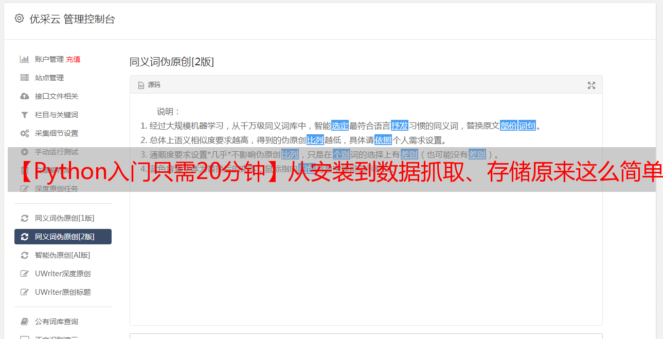优采云 发布时间: 2022-06-19 05:55【Python入门只需20分钟】从安装到数据抓取、存储原来这么简单