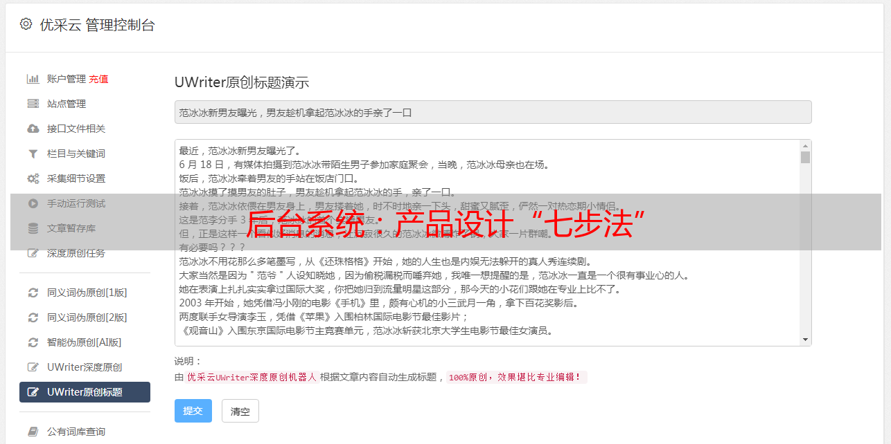 优采云 发布时间: 2022-06-19 09:01后台系统:产品设计“七步法”