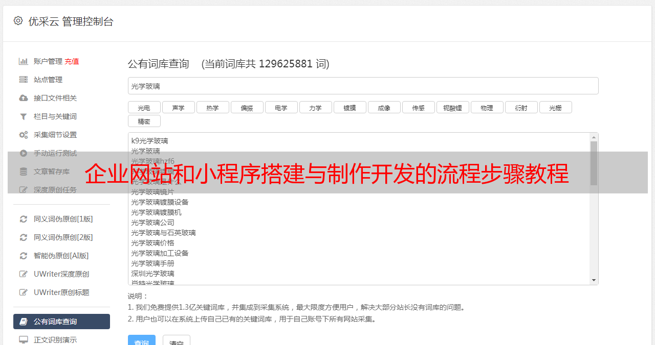 优采云 发布时间: 2022-06-19 09:38企业网站和小程序搭建与制作开发的流程步骤教程