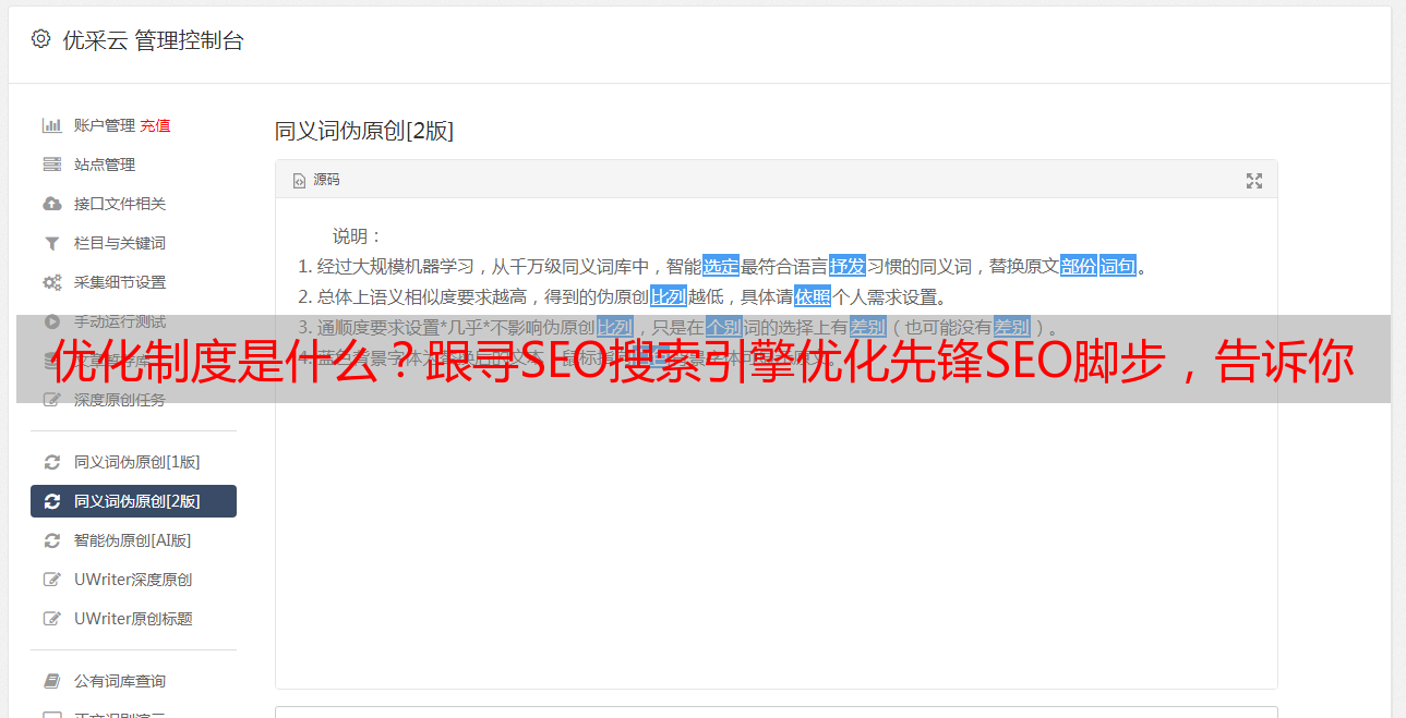 优采云 发布时间: 2022-06-19 12:03优化制度是什么?跟寻SEO搜索引擎优化先锋SEO脚步,告诉你什么是优化制度