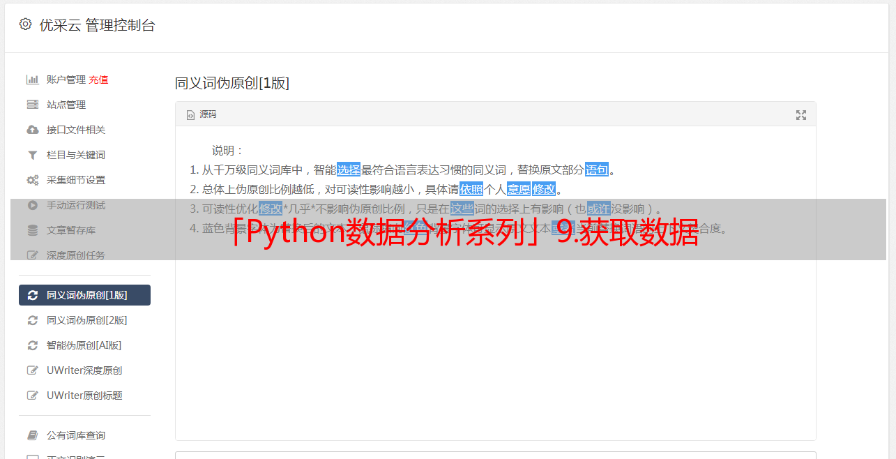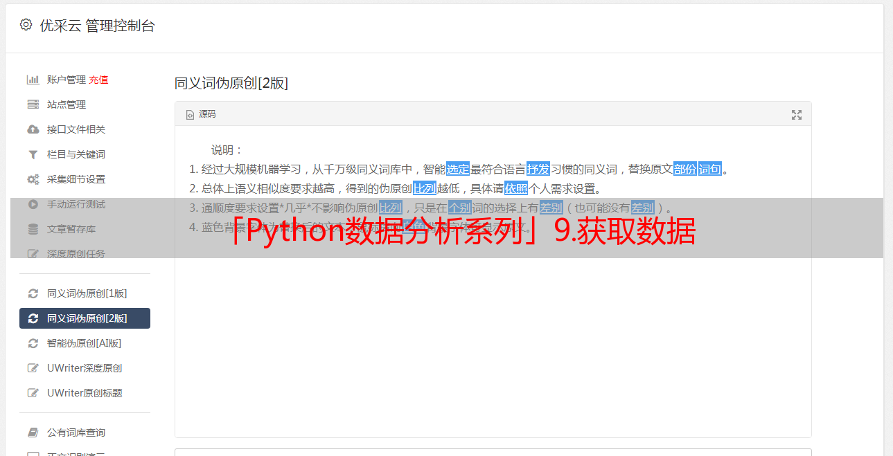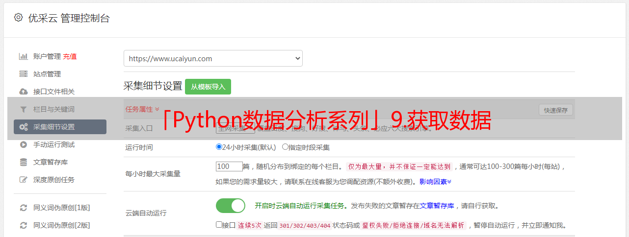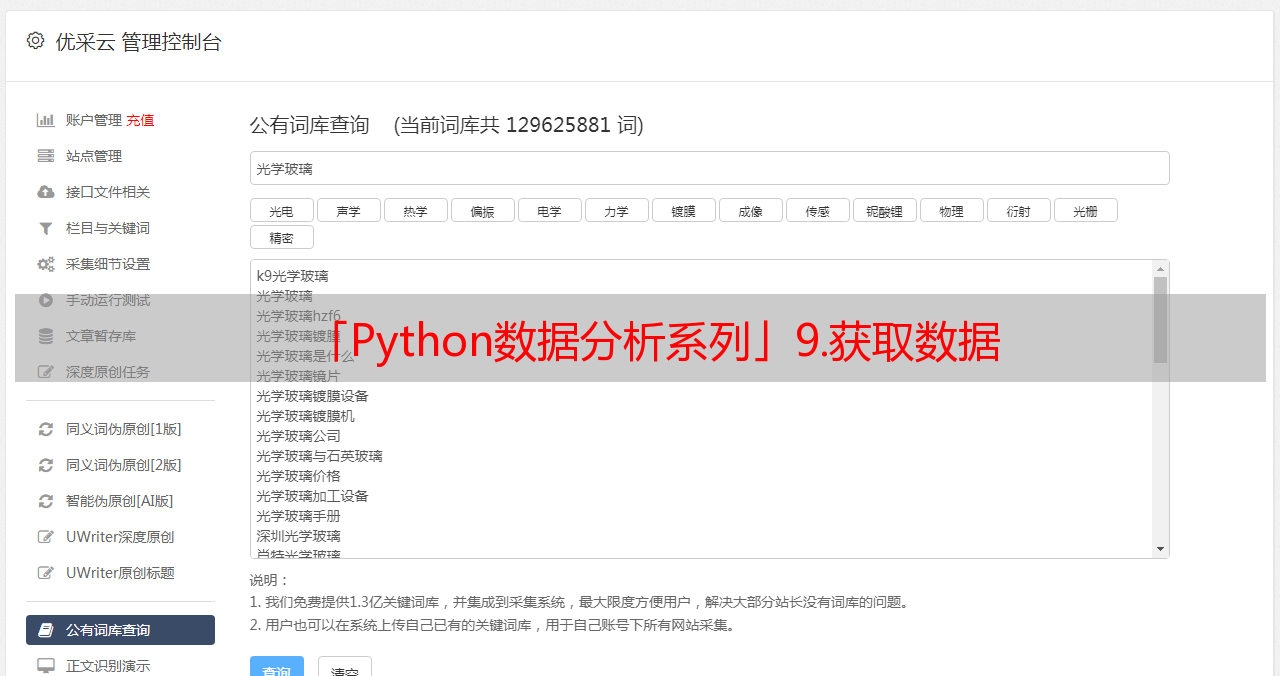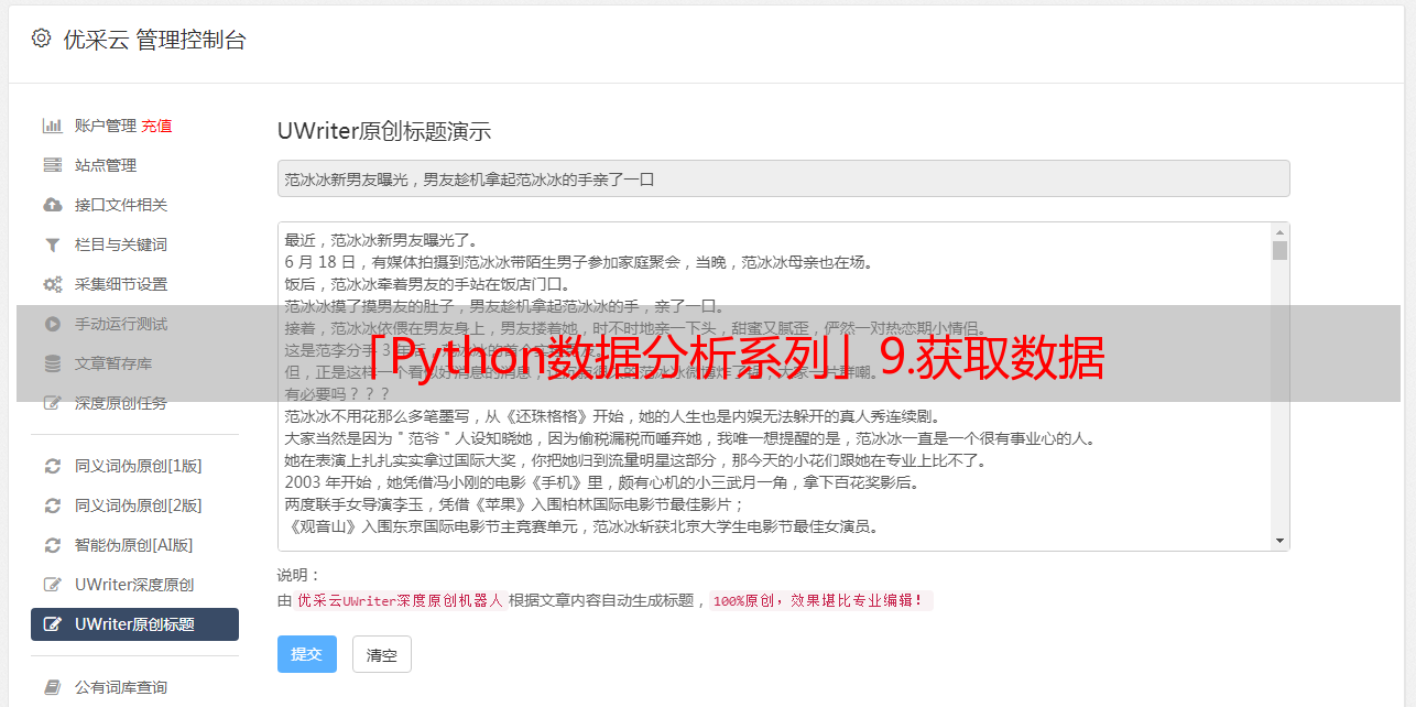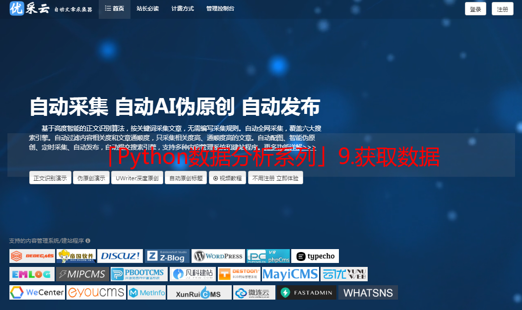优采云 发布时间: 2022-06-20 04:22「Python数据分析系列」9.获取数据