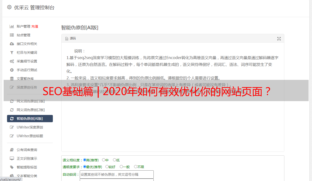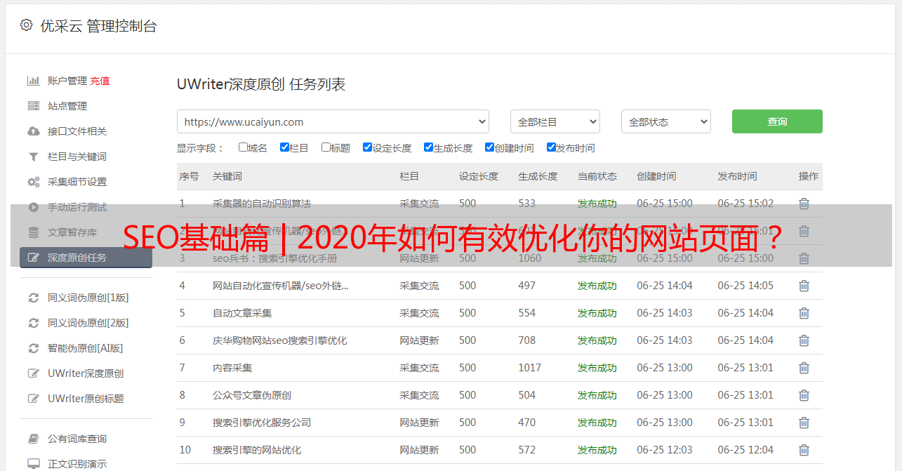优采云 发布时间: 2022-06-20 13:33SEO基础篇 | 2020年如何有效优化你的网站页面?