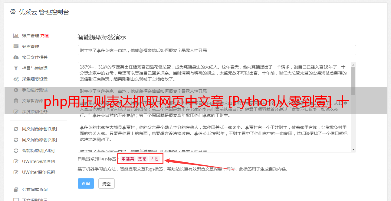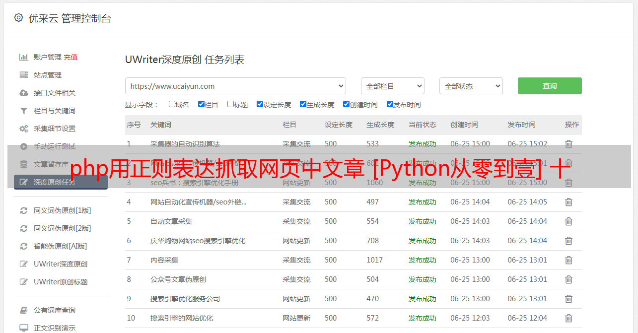 优采云 发布时间: 2022-06-20 13:40php用正则表达抓取网页中文章 [Python从零到壹] 十